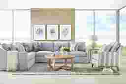 From the moment you walk through the door, drop your keys and say, "Whew, what a day," the Pacific Grove collection from Cindy Crawford Home is there with the comfort and serenity you need to unwind in style. Deadlines, to-do lists and everything else can wait, especially when you're welcomed by a sectional wrapped in the cool, coastal blue of a perfectly tailored slipcover. The soft woven fabric offers the perfect reminder of what comfort really feels like while plush cushions invite you to stretch out, sprawl or simply lounge as daylight dims and evening settles in. For overnight guests, the built-in Sealy queen sleeper unfolds to offer a cozy night's rest. Effortless curves, courtesy of the chic flair arms, bring subtle sophistication to an already breathtaking silhouette. Tapered block legs and artfully patterned toss pillows complete the picture-perfect style. This L-shaped sectional includes a right arm facing sleeper sofa alongside a left arm facing sofa. Upholstery: 50% Polyester, 50% Cotton