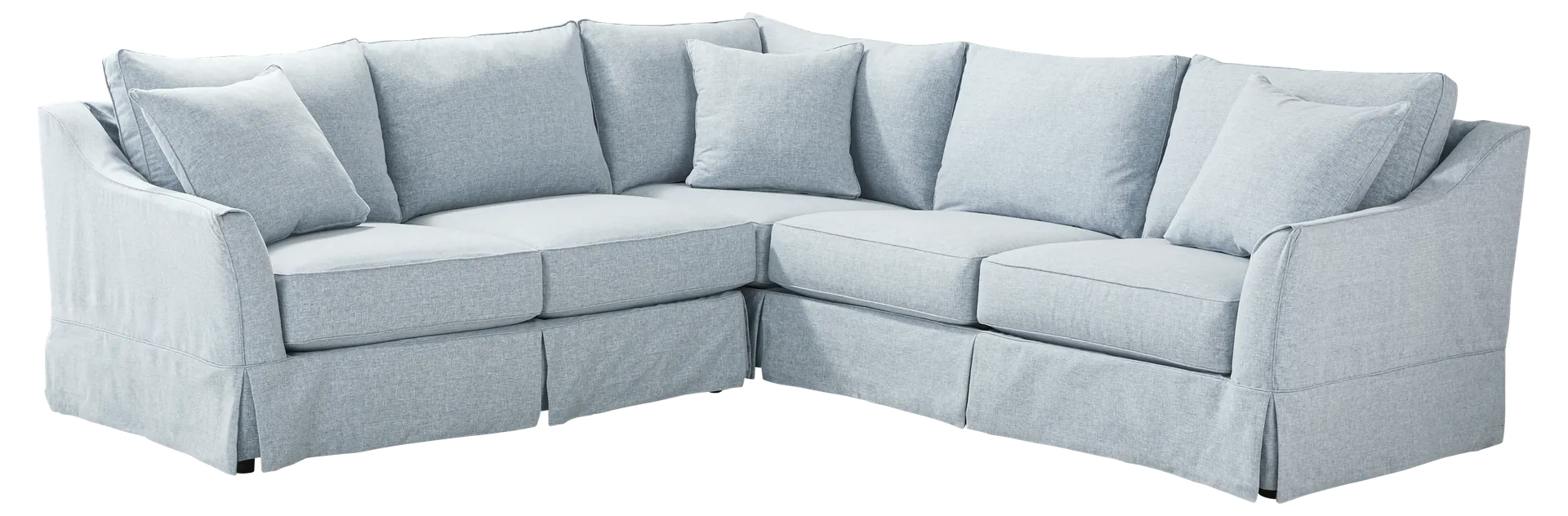 A slipcovered sectional, like this one from the Cindy Crawford Home collection, is an excellent choice for active households. The primary benefit is the functionality of a removable cover, which allows for easier maintenance than standard fixed upholstery. The durable woven fabric is a balanced 50% polyester and 50% cotton blend, designed to offer the soft feel of natural fibers with the added strength and wrinkle resistance of polyester, making it ideal for daily family life.