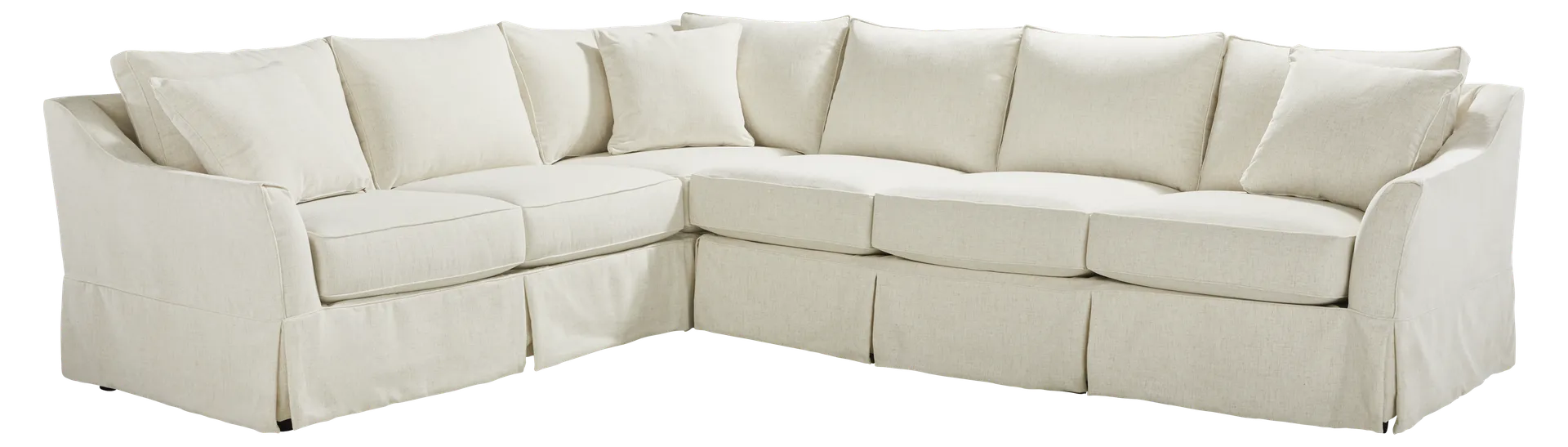 From the moment you walk through the door, drop your keys and say, "Whew, what a day," the Pacific Grove collection from Cindy Crawford Home is there with the comfort and serenity you need to unwind in style. Deadlines, to-do lists and everything else can wait, especially when you're welcomed by a sectional wrapped in the cool, coastal white of a perfectly tailored slipcover. The soft woven fabric offers the perfect reminder of what comfort really feels like while plush cushions invite you to stretch out, sprawl or simply lounge as daylight dims and evening settles in. Effortless curves, courtesy of the chic flair arms, bring subtle sophistication to an already breathtaking silhouette. Just when you think this look couldn't get any better, tapered block legs and artfully patterned toss pillows step in to complete the picture-perfect style. This L-shaped sectional includes a right arm facing loveseat alongside a left arm facing sofa. Upholstery: 50% Polyester, 50% Cotton