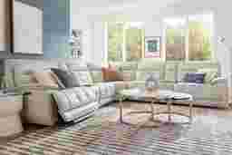 Striking features, spacious seating and sophisticated design details give the Drew & Jonathan Pacific Heights sectional a stunning profile, adding a sophisticated ambiance with a distinctive touch of class. Top grain leather where the body touches embodies luxuriousness while the attached channel designed back, padded arms and power adjustment in the headrest and wide footrest provides ample space to comfortably relax and unwind in this transitional piece. The media console includes stainless steel cupholders, a charging station and storage compartments to keep all your home entertainment needs readily available. Top grain leather where the body touches. Vinyl sides & back.