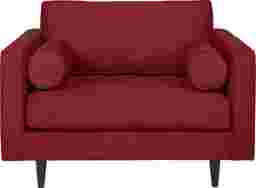 A vital piece in a sleek modern collection, the Pacific Palisades chair invites you into style and comfort. Upholstered with durable Microfiber in cardinal, this stunning oversized chair features a tufted cushion with top stitching details. Track arms with round welted bolster arm pillows provide stylish comfort. 100% Polyester