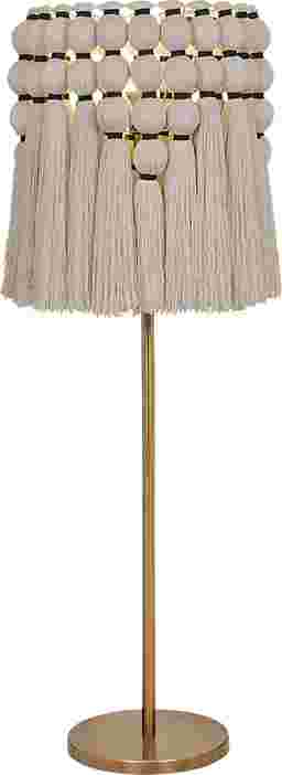 The Paggo Natural Floor Lamp feels like a stunning piece of boho couture for your home-its tall, slender brass stand rising gracefully to meet a dramatic shade dripping with cascading fringe and wrapped in sculptural rows of oversized, hand-tied beads. The texture, the movement, the artisanal detail-it all comes together like a piece of wearable art transformed into lighting, bringing warmth, whimsy, and a bold, tactile elegance that instantly elevates any room. When lit, the fringe glows softly, swaying gently like fabric in a summer breeze and filling the space with cozy, romantic ambiance. Let its statement-making beauty and irresistible bohemian charm be the reason you bring it into your home. Partial assembly may be required.