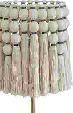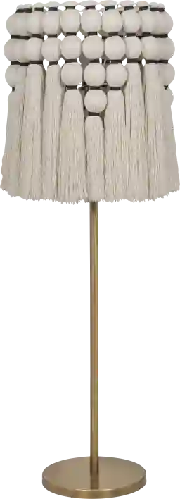 This lamp features a tall, slender brass stand designed for graceful elevation. While the construction is durable, the delicate cascading fringe and hand-tied beads are artisanal features best suited for lower-traffic areas. To ensure maximum stability in homes with active pets or children, we suggest placing the lamp in a corner or alongside a sturdy piece of furniture like a sofa or end table.