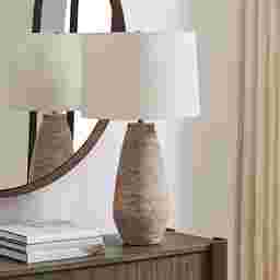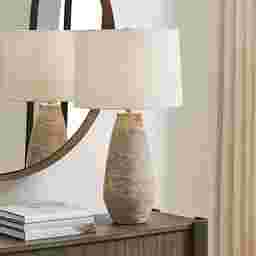 With its weathered, stone-washed texture and natural beige tones, this lamp is an excellent fit for organic modern, coastal, and transitional styles. Its earthy, "relic" appearance mimics the soft, eroded beauty of natural stone, making it a perfect grounding element for rooms that feature neutral palettes, linen fabrics, and reclaimed wood.