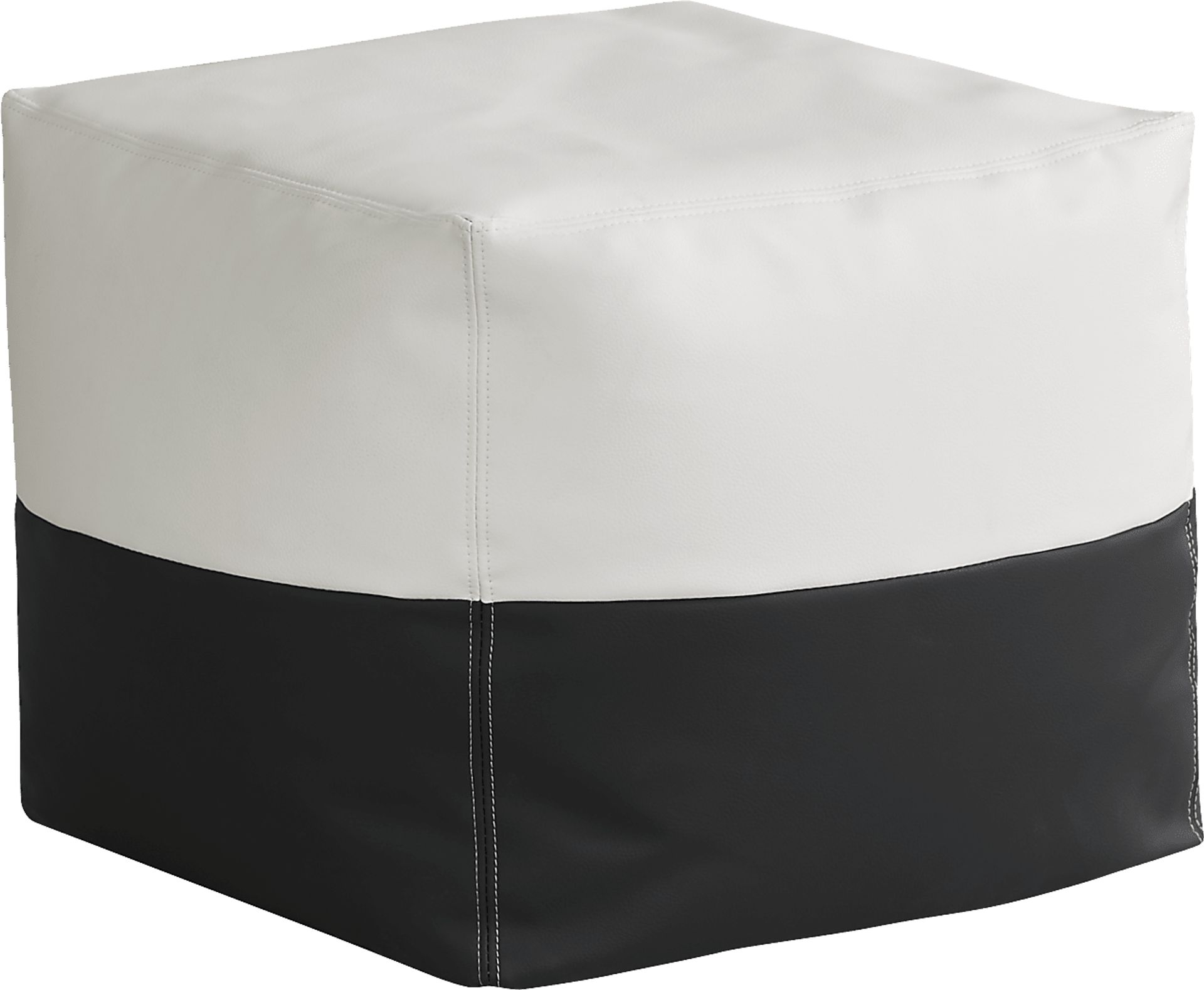 Add an extra seating option or place to kick your feet up with the Pall pouf ottoman. This item is upholstered in a durable, UV-resistant outdoor vinyl. The split coloring of black and white gives this piece a simple and stylish look. Upholstery: 100% Vinyl