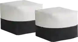 Add an extra seating option or place to kick your feet up with the Pall pouf ottomans. This set of two is upholstered in a durable InsideOut outdoor vinyl made to look like leather. The split coloring of black and white give this piece a simple and stylish look.