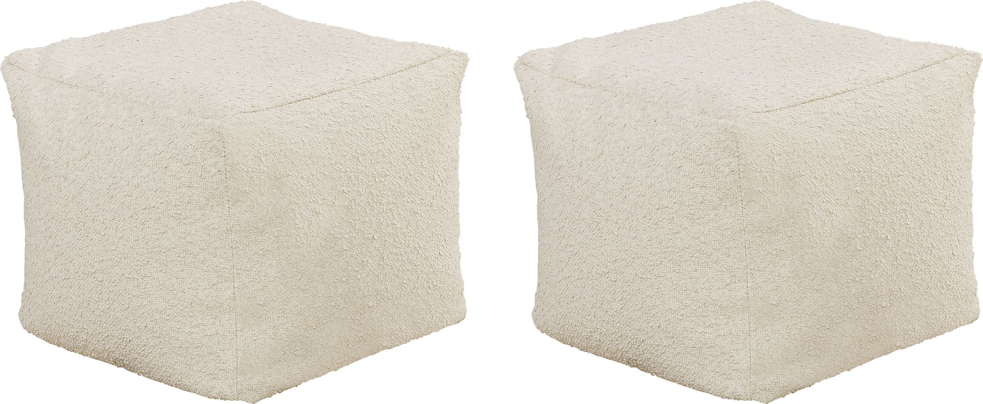 These poufs are upholstered in a durable, UV-resistant outdoor boucle fabric. This specialized material is engineered to withstand prolonged sun exposure without significant fading. Additionally, the polyester construction is naturally resistant to moisture absorption, making these a reliable choice for open patios, decks, or poolside areas where they may be exposed to the elements.
