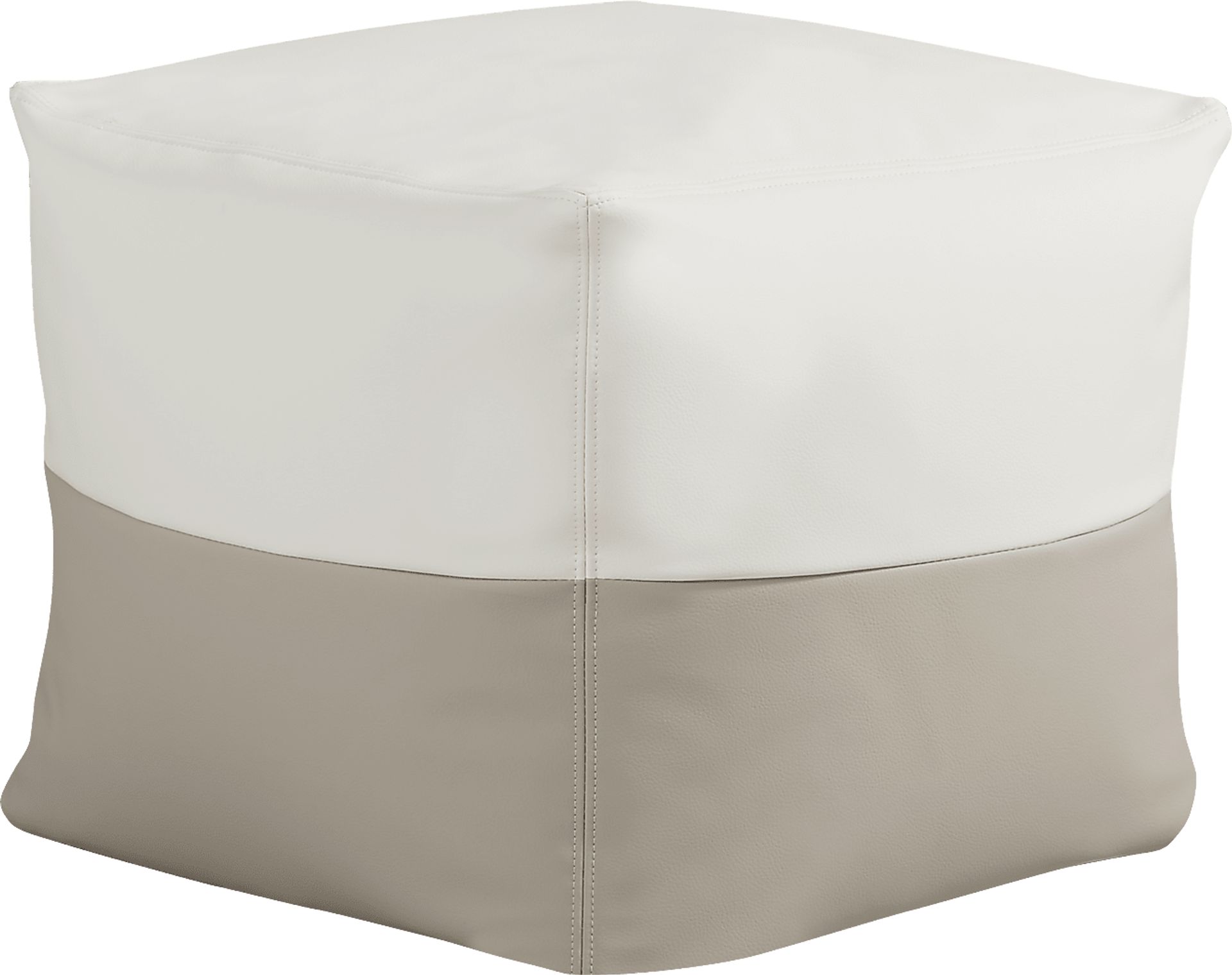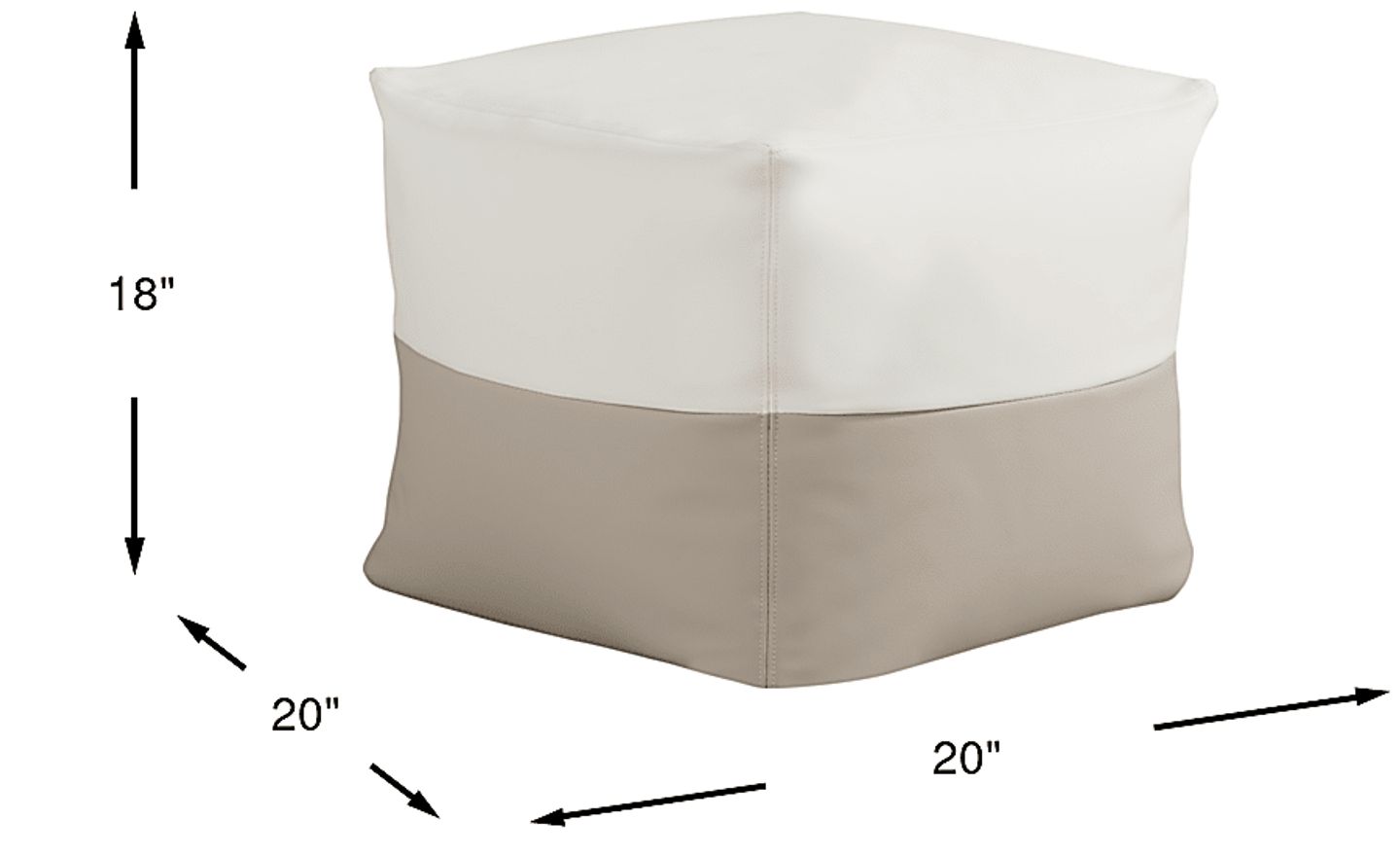 Add an extra seating option or place to kick your feet up with the Pall pouf ottoman. This item is upholstered in a durable, UV-resistant outdoor vinyl. The split coloring of taupe and white gives this piece a simple and stylish look. Upholstery: 100% Vinyl