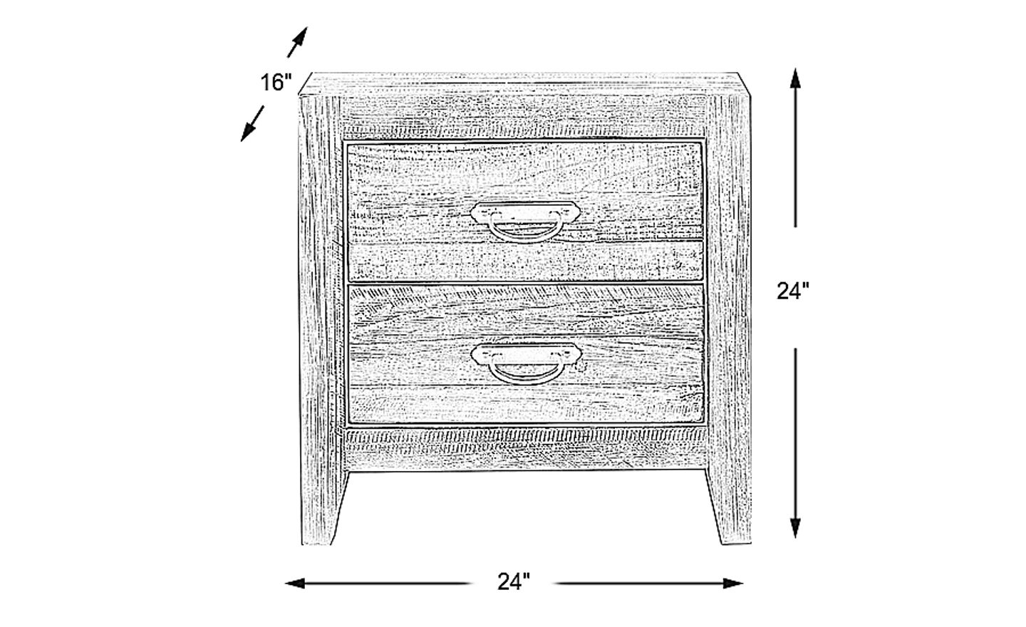 Your evening essentials will always be close by when you have the Palm Grove nightstand. This charming piece has two roomy drawers have Mission style antique brass finished hardware. Each drawer is operated with Euro style guides with safety stops. The weathered, wire brushed toffee finish gives the nightstand a relaxed, coastal chic look.