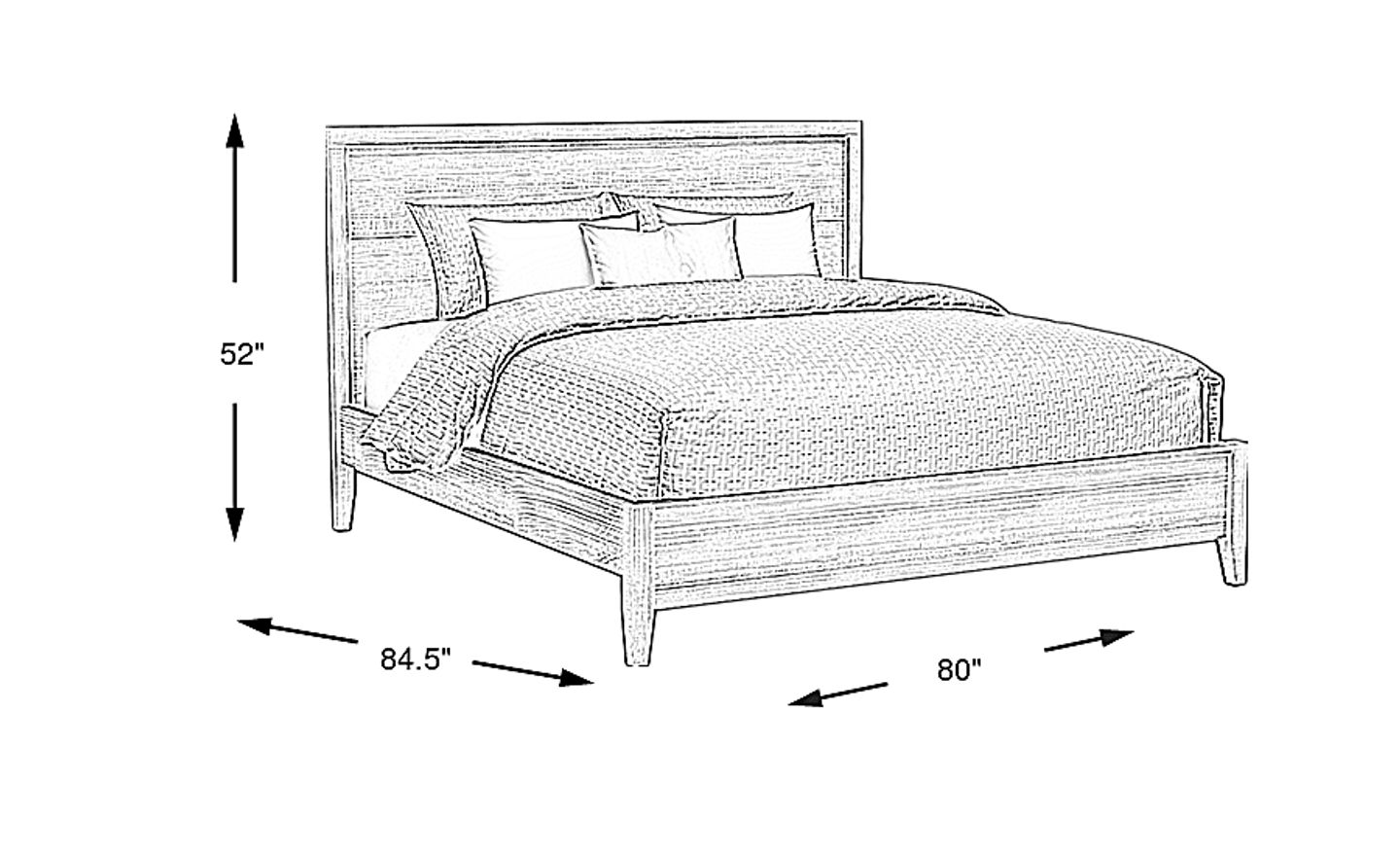 With a length of 84.5 inches and a width of 80 inches, this bed is designed for a spacious feel. To ensure a comfortable flow in your room, we recommend allowing at least 30 inches of walking space around the perimeter of the bed. The wire-brushed white finish is particularly effective in smaller or darker rooms, as it reflects natural light to create an airy, more expansive atmosphere.