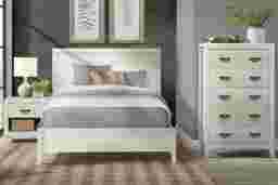 Your evening essentials will always be close by when you have the Palm Grove nightstand. This charming piece has one roomy drawer that has Mission style antique brass finished hardware, and a lower open shelf perfect for display. The drawer is operated with Euro style guides with safety stops. The weathered, wire brushed white finish gives the nightstand a relaxed, coastal chic look.
