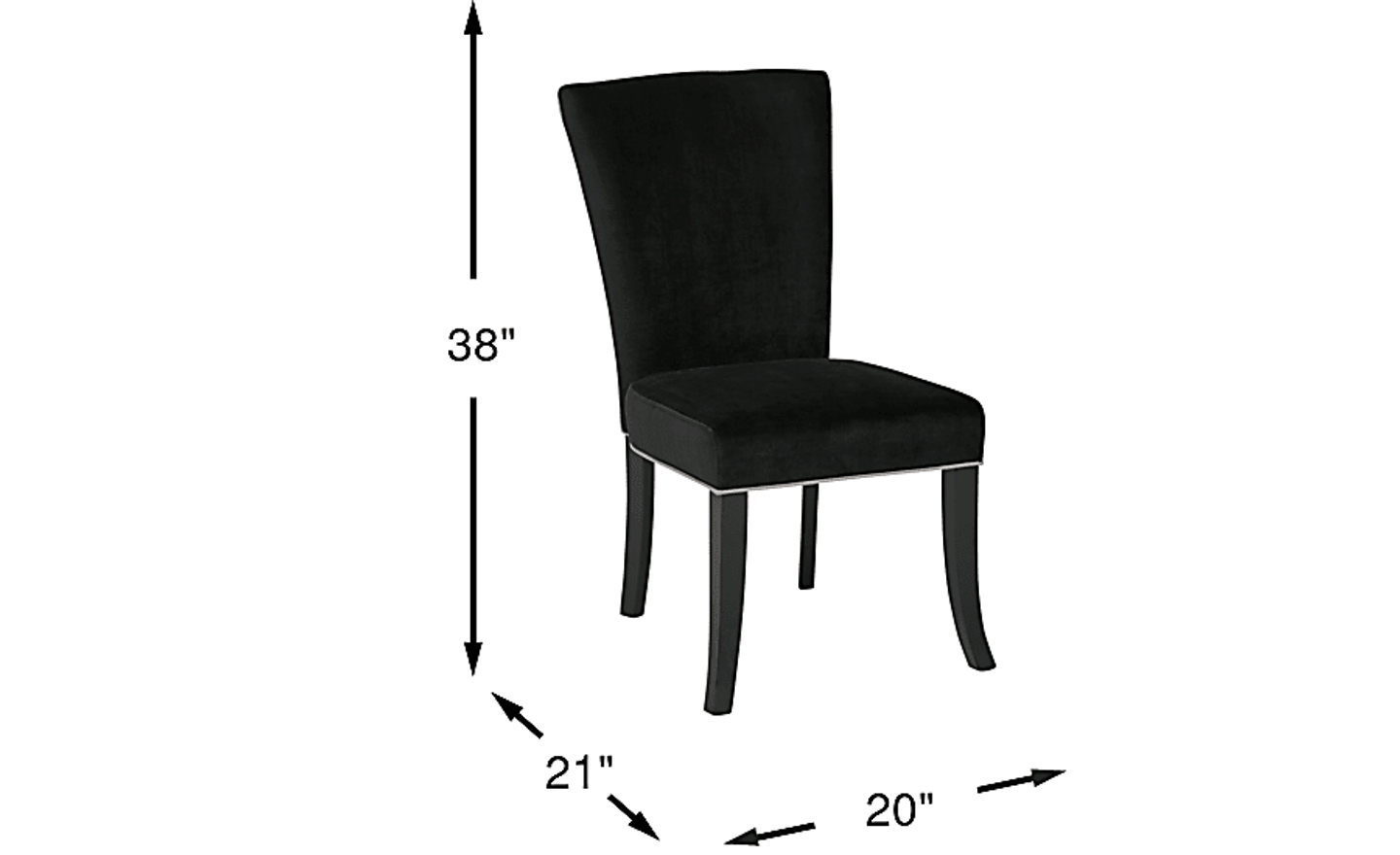 The Palmetto Way black side chair is the perfect addition to your contemporary dining space. Plush velvet with gray welted trim adds a luxurious appearance. Dark wood finish legs complete the sharp and modern look.