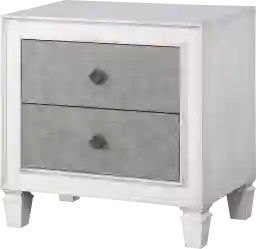 This nightstand features two deep, full-sized drawers designed for maximum organization. These drawers provide ample space to tuck away electronics, reading materials, and personal items, while the sturdy block legs and case-good construction ensure the unit remains stable even when the drawers are fully utilized.