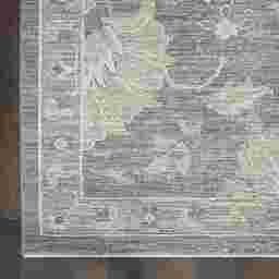 The stylized blossom pattern of the Palmyri rug crafts an alluring portrait with a mix of earth tones. Power loomed with a mixture of materials, this rug features a medium pile and an ornamental border.