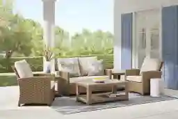 Paloma Brown 4 Pc Outdoor Loveseat Seating Set With Beige Cushions