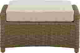The sun finds its favorite spot as the Paloma outdoor ottoman supports a seating experience that sets the bar for patio excellence. Woven wicker in light brown brings classic tropical color and texture. Designed with a rust-resistant aluminum frame, it's ideal as a footrest or an extra seat. Its single cushion in durable, UV-resistant outdoor fabric is designed to love every season.