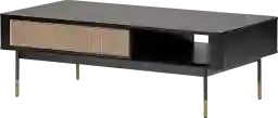 The Palvest black cocktail table, with its contemporary lines, is as stunning as it is functional. This table features solid wood outer frame and steel legs with bronze lower accents. There is one wicker pull out drawer and a large shelf for convenient storage perfect for your living space. Customer assembly is required.