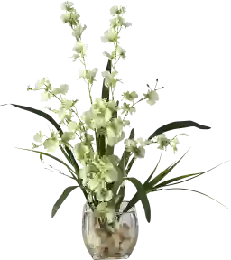 With its winding stems and curvy stalks, it's easy to see why the Pamella orchid silk flower arrangement is such a stunning piece. Its beautiful and unique orchids rest snugly in a short oval-shaped glass container, which is filled with artificial water and an abundant supply of river rock to complement its appeal. This extraordinary arrangement is the perfect way to spice up any room or office space.