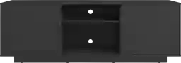 This modern unit offers a strategic balance of display and concealment. It features two striking flat-panel doors with a unique patterned design that hide a spacious storage area, perfect for tucking away games, controllers, or smaller components. Additionally, the central open shelving provides the necessary ventilation for gaming consoles or media players that require consistent airflow to prevent overheating.