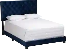 This bed is engineered for longevity, featuring a robust frame crafted from solid rubberwood and engineered wood. Rubberwood is highly valued in furniture making for its dense grain and natural durability, providing a stable foundation. The frame is then wrapped in foam padding and finished with a sumptuous blue velvet upholstery for a luxe, high-end feel.