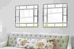 The Pariman mirror features a square frame fashioned to look like bamboo rods and it's finished in a country silver. The sleekness of this mirror brings some flair to any interior decor. Alone or in multiples, this mirror is a perfect focal point for an entryway, bathroom, bedroom or any room in your home. D-rings are affixed to the back of the mirror so it is ready to hang right out of the box in either a square or diamond orientation!