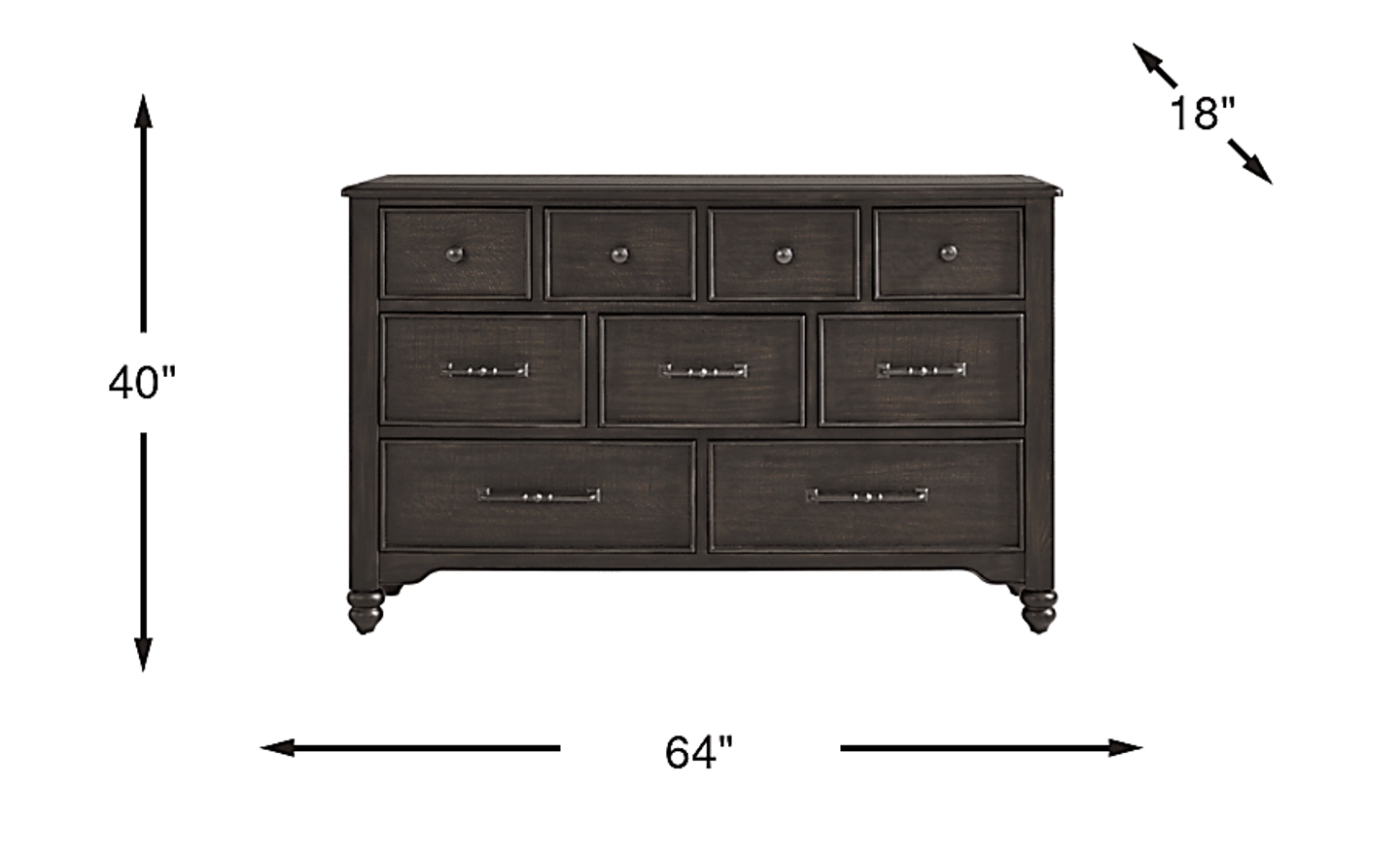Regal design elements and understated sophistication in the Park Grove dresser bring a modest and timeless feel to your space. Traditional in style and constructed of pine solids, this piece features nine drawers with metal pulls, dustproof bottoms, English dovetail joints in the front, French dovetail joints in the back and side mounted ball-bearing glides for support and longevity.