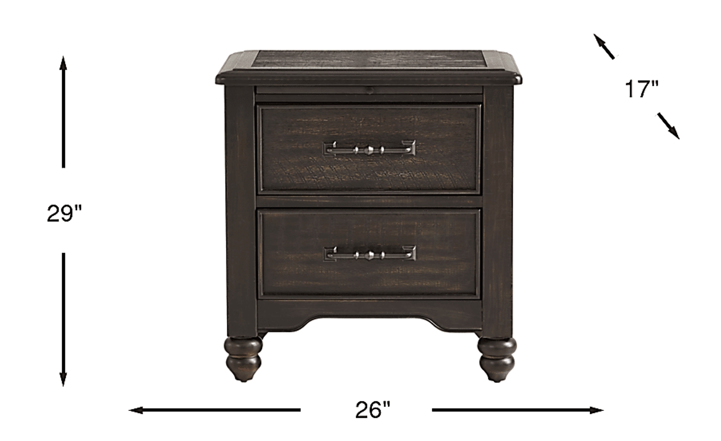 Regal design and understated sophistication in the Park Grove nightstand bring a modest and timeless feel to your space. Traditional in style and constructed of pine solids, this piece features two drawers with metal pulls, dustproof bottoms, English dovetail joints in the front, French dovetail joints in the back and side mounted ball-bearing glides for support and longevity. A hidden component above the drawers extends for additional surface space, perfect for nighttime reading and easily accessing other items near your bed.