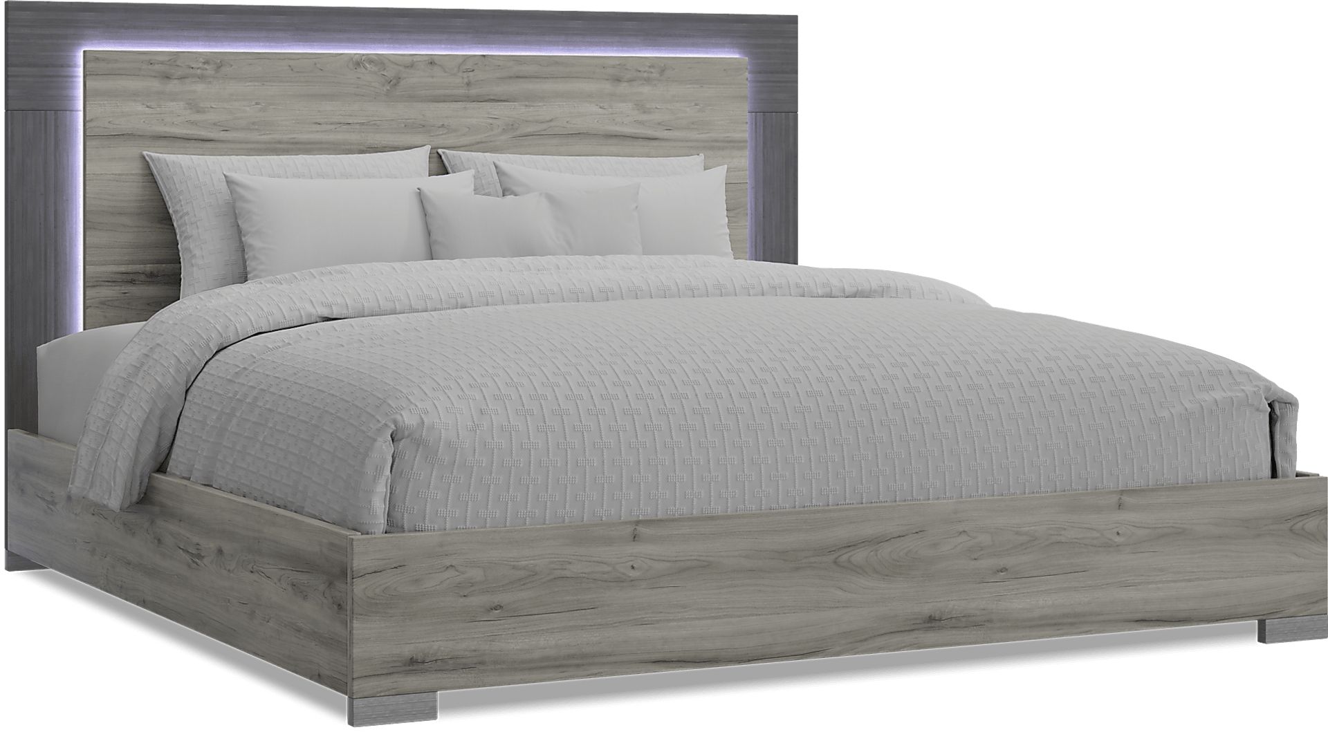 Perfect for the more modern bedroom, the Park Slope bed is defined by its clean lines and LED lighted headboard. The high gloss gray grain finish creates a sleek aesthetic on this contemporary European styled bed. The LED lighting in the headboard can work as a night light or mood lighting to liven up your room. A regular bed frame or an adjustable frame is required for this bed Mattress and foundation (if required) sold separately. Bed shown is queen size. Bed frames included.