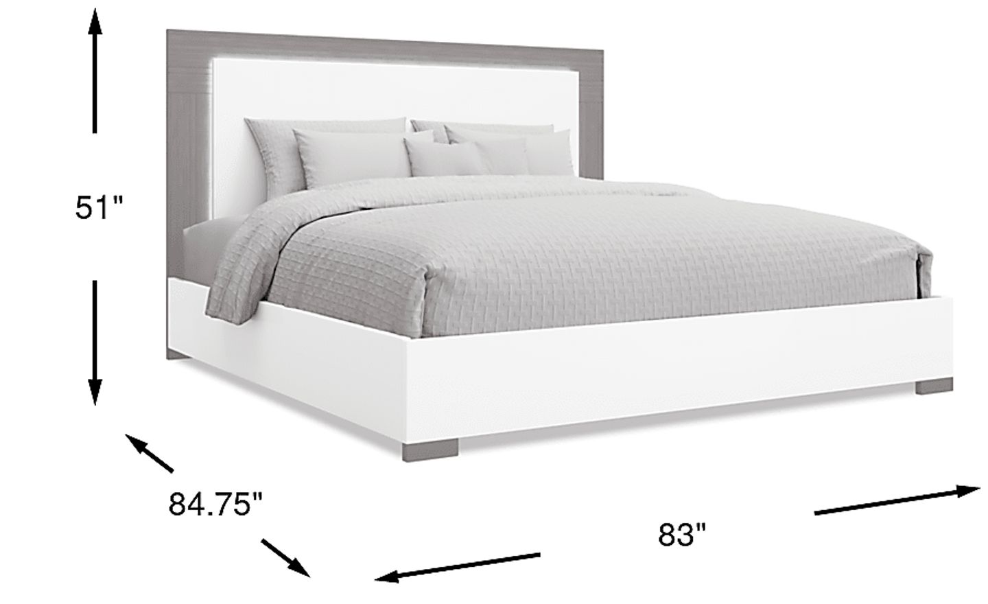 Perfect for the more modern bedroom, the Park Slope bed is defined by its clean lines and LED lighted headboard. The two-tone high gloss white and gray grain finish creates a sleek aesthetic on this contemporary European styled bed. The LED lighting in the headboard can work as a night light or mood lighting to liven up your room. A regular bed frame or an adjustable frame is required for this bed. Mattress and foundation (if required) sold separately. Bed shown is queen size.