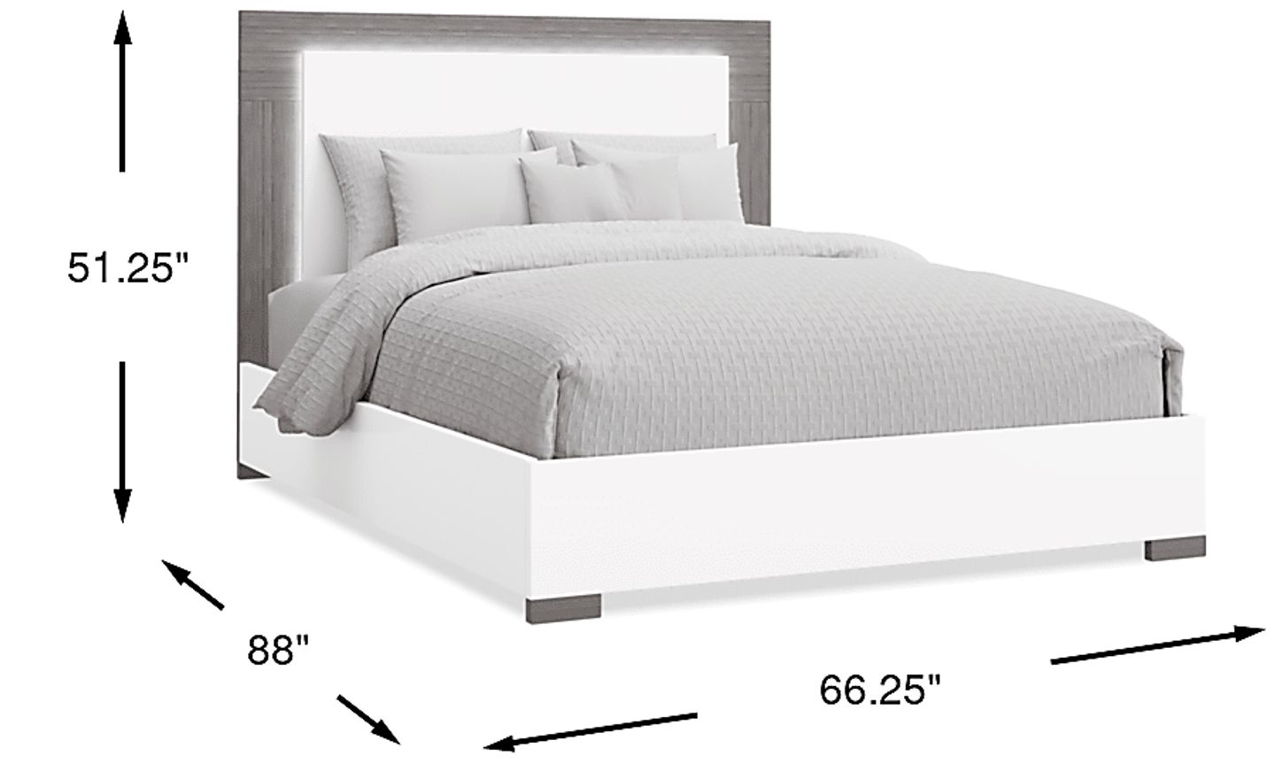 Perfect for the more modern bedroom, the Park Slope bed is defined by its clean lines and LED lighted headboard. The two-tone high gloss white and gray grain finish creates a sleek aesthetic on this contemporary European styled bed. The LED lighting in the headboard can work as a night light or mood lighting to liven up your room. A regular bed frame or an adjustable frame is required for this bed. Mattress and foundation (if required) sold separately. Bed frames included.