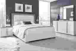 Made in Italy, the sleek European Park Slope collection is defined by its clean lines and LED lighted headboard. The high gloss white finish and contrasting gray grain textured tops maintain an immaculate appearance on the contemporary European styled bedroom. The LED lighting in the headboard can work as a night light or mood lighting to liven up your room. Matching dresser with unique vertical hardware pulls add a distinctive look that set this suite apart. An ultra-modern mirror with an asymmetrical vertical panel adds an exceptional flair to this set. Mattress and foundation (if required) sold separately. Bed shown is queen size. Bed frames included.
