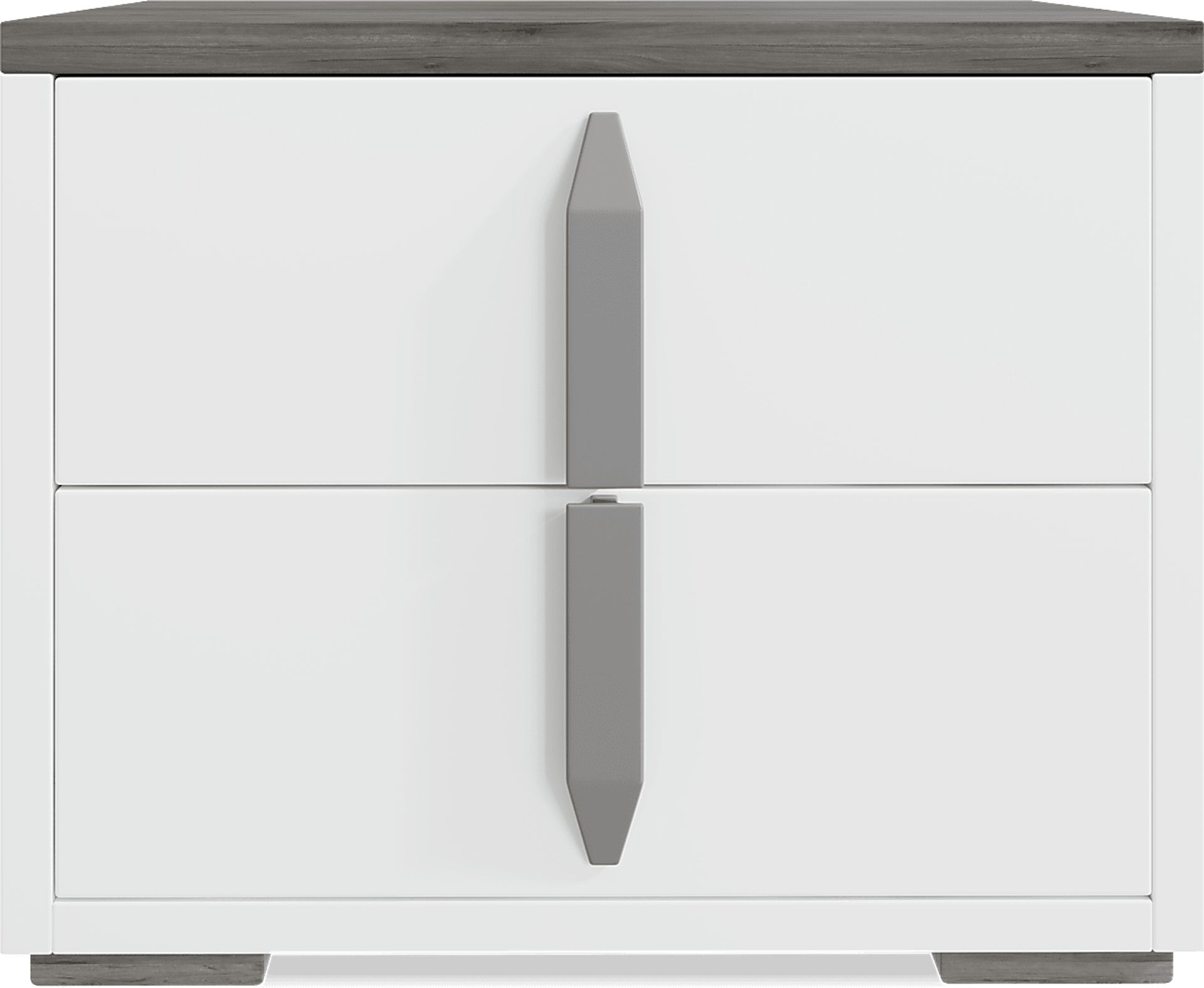 With the same chic style as the Park Slope bed, this nightstand fits right in to your modern bedroom. Features vertical faux metal hardware pulls, a high gloss white finish and contrasting gray grain finished top. Two soft close drawers offer convenient bedside storage. Made in Italy.