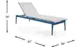 Poolside relaxation is yours with the contemporary Park Walk chaise. This sleek chaise is made with a fully welded rust resistant solid aluminum frame in a navy finish. The adjustable multi-position back and low maintenance sling seating beckon you to enjoy sunny days outside.