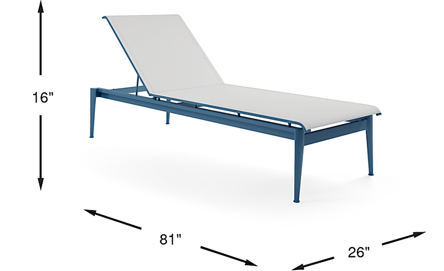 Sleek and durable the set of two Park Walk chaises take a contemporary approach to outdoor living. Each chaise is made with a fully welded rust resistant solid aluminum frame in a navy finish. The adjustable multi-position back and low maintenance sling seating beckon you to enjoy sunny days outside.