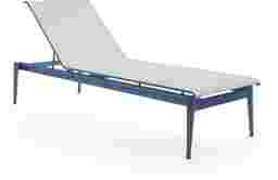 Poolside relaxation is yours with the contemporary Park Walk chaise. This sleek chaise is made with a fully welded rust resistant solid aluminum frame in a navy finish. The adjustable multi-position back and low maintenance sling seating beckon you to enjoy sunny days outside.