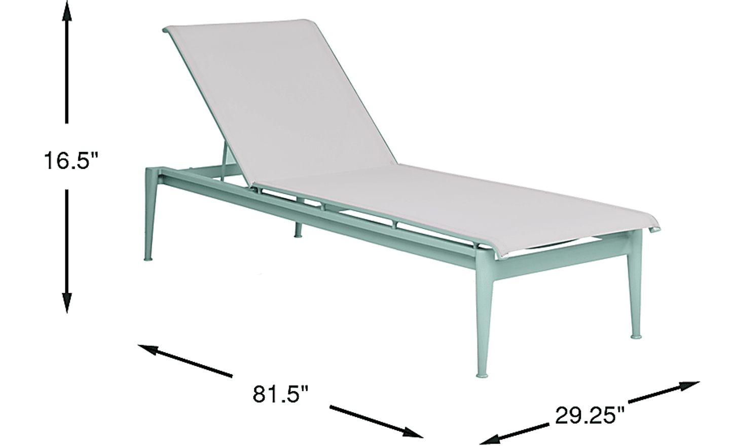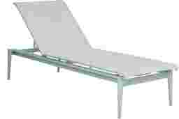 Poolside relaxation is yours with the contemporary Park Walk chaise. This sleek chaise is made with a fully welded rust resistant solid aluminum frame in a surf teal finish. The adjustable multi-position back and low maintenance sling seating beckon you to enjoy sunny days outside.