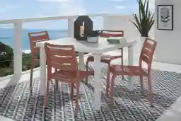 Park Walk White 5 Pc 40 in. Square Outdoor Dining Set with Coral Chairs