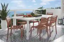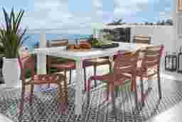 Park Walk White 7 Pc Rectangle Outdoor Dining Set With Coral Chairs