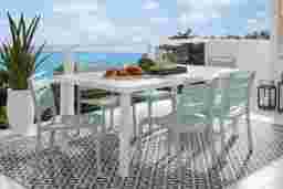 Park Walk White 7 Pc Rectangle Outdoor Dining Set with Surf Chairs