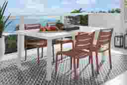 Enjoy outdoor meals and refreshments with the Park Walk dining table. Made with a fully welded rust resistant solid aluminum frame, the table has a 70 x 42-inch rectangle top supported by straight legs. The fresh white finish ensures easy coordination with additional patio furniture. An umbrella hole in the center of the table can be capped when not in use.