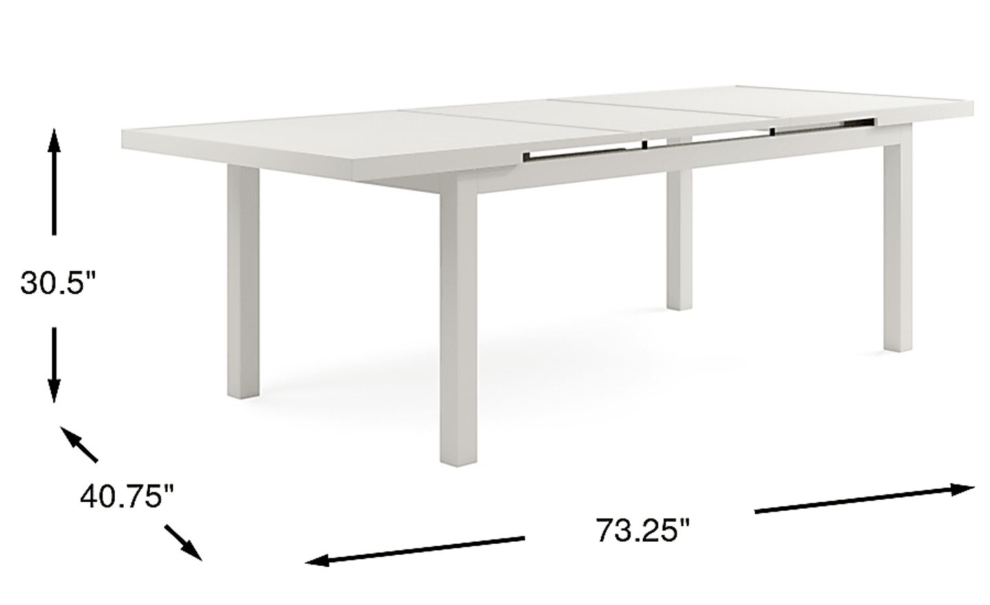 Host the perfect cookout and invite extra friends with the Park Walk dining table. The easy pop extension feature expands the table from 73" to 97" to make room for more guests. Made with a fully welded rust resistant solid aluminum frame, the table has a fresh white finish that easily coordinates with the rest of your patio decor.