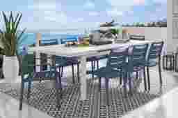 Park Walk White 9 Pc 73 - 97 In. Rectangle Extension Outdoor Dining Set With Navy Chairs