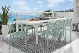 Park Walk White 9 Pc 73 - 97 In. Rectangle Extension Outdoor Dining Set With Surf Chairs