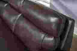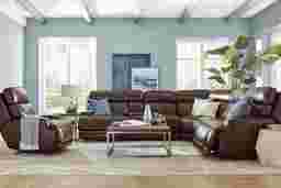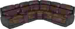 To complement its air of understated cool, it's the details in the Drew & Jonathan Parker Point sectional that spell out just how luxurious this suave sofa really is. Upholstered in dark brown top grain leather where the body touches, the plush attached seat and back cushions provide exceptional support and comfort, while top-stitched seams create handsome texture across the backs, seats, and track arms of the set. Triple power reclining controls the headrest, footrest and lumbar support, and a zero-gravity mechanism provides a weightless reclining experience. USB-A and USB-C charging ports are always nearby on the control panels as well as the storage console. The console also contains hidden cupholders and an LED reading light to add extra functionality for convenient family relaxation. Triple power LAF recliner, armless chair, corner wedge, console, triple power RAF recliner. Upholstery: Top grain leather where the body touches with polyurethane sides and backs.