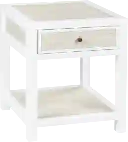 Introducing the epitome of coastal charm and practical elegance, the Parkmont white end table. Designed with functionality in mind, this end table features a convenient drawer and a lower bottom shelf, providing ample storage space to keep your essentials neatly organized and within easy reach.