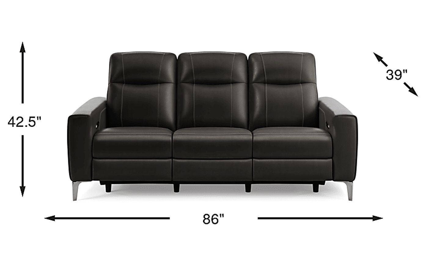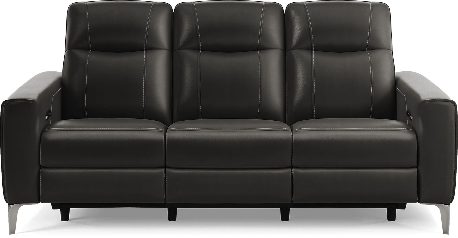 A sleek design and upscale vibe make the Drew & Jonathan Parkside Heights reclining sofa the ultimate lounging experience for your living space. Upholstered in top grain leather where the body touches, this modern piece features sophisticated track arms, textured stitching for a provocative visual element and tapered legs with a nickel finish. The dual power reclining function allows adjustment in the headrest and footrest for optimal relief and relaxation. Upholstery: Top grain leather where the body touches and polyurethane sides and backs.