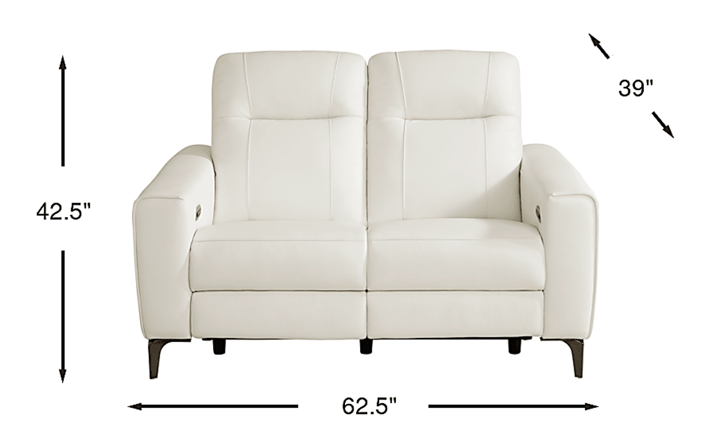 A sleek design and upscale vibe make the Drew & Jonathan Parkside Heights reclining loveseat the ultimate lounging experience for your living space. Upholstered in top grain leather where the body touches, this modern piece features sophisticated track arms, textured stitching for a visual element and tapered legs with a nickel finish. The dual power reclining function allows adjustment in the headrest and footrest for optimal relief and relaxation. Upholstery: Top grain leather where the body touches and polyurethane sides and backs.