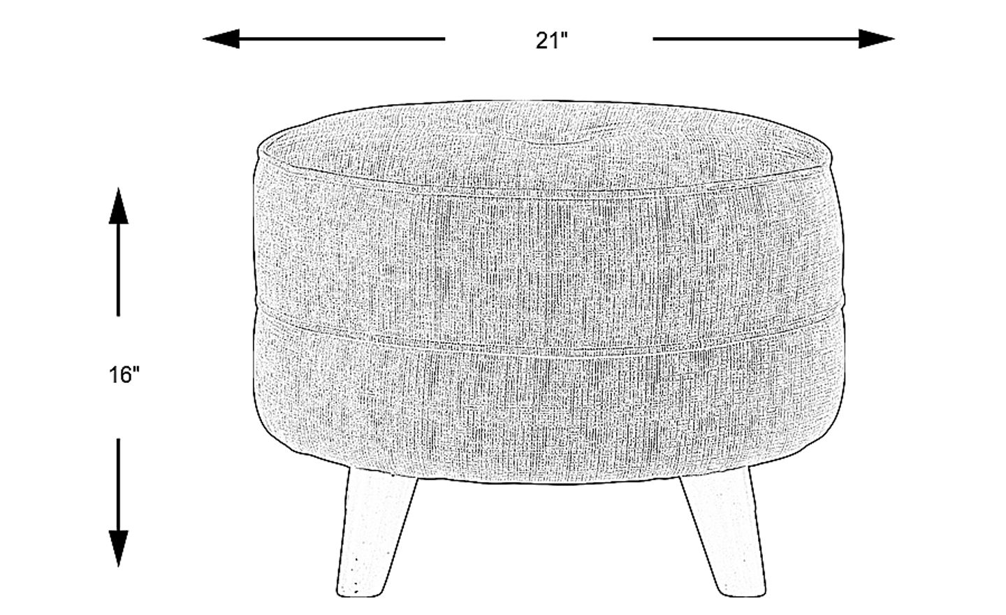A perfect partner for the Parkview chair, the mid-century style round matching ottoman is cozy and inviting. It features textured woven fabric in a pewter color. Welted seams add a tailored touch while angled tapered legs provides support. 100% Polyester.