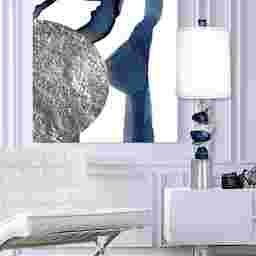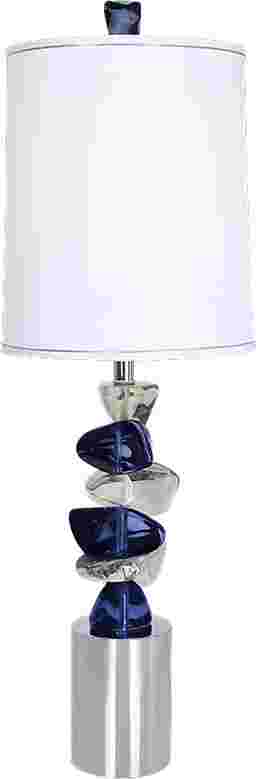 An eye-catching chrome-finished base, a unique design pattern sprucing its midsection, and a cylindrical, a white crepe-finished shade combine to make the Parterre table lampa modern, yet transitional, addition to your living space. Pair this blue and silver-centric table lamp with whites, grays and blues to create the living room or bedroom aesthetic you desire. This lamp stands a towering 36.5 inches tall and includes a three-way socket switch. Requires 1 bulb, which is not included.