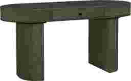Yes, this desk is engineered for both style and stability. The design features a thick, rounded rectangular top supported by bold, oversized cylindrical legs. This grounded construction provides a sturdy foundation that minimizes wobbling, making it reliable for supporting laptops, heavy notebooks, and peripheral office equipment.